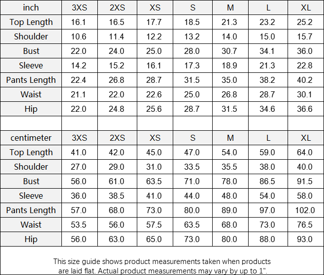 | Pants Length | 22.4 | 26.8 | 28.7 | 31.5 | 35.0 | 38.2 | 40.2 |