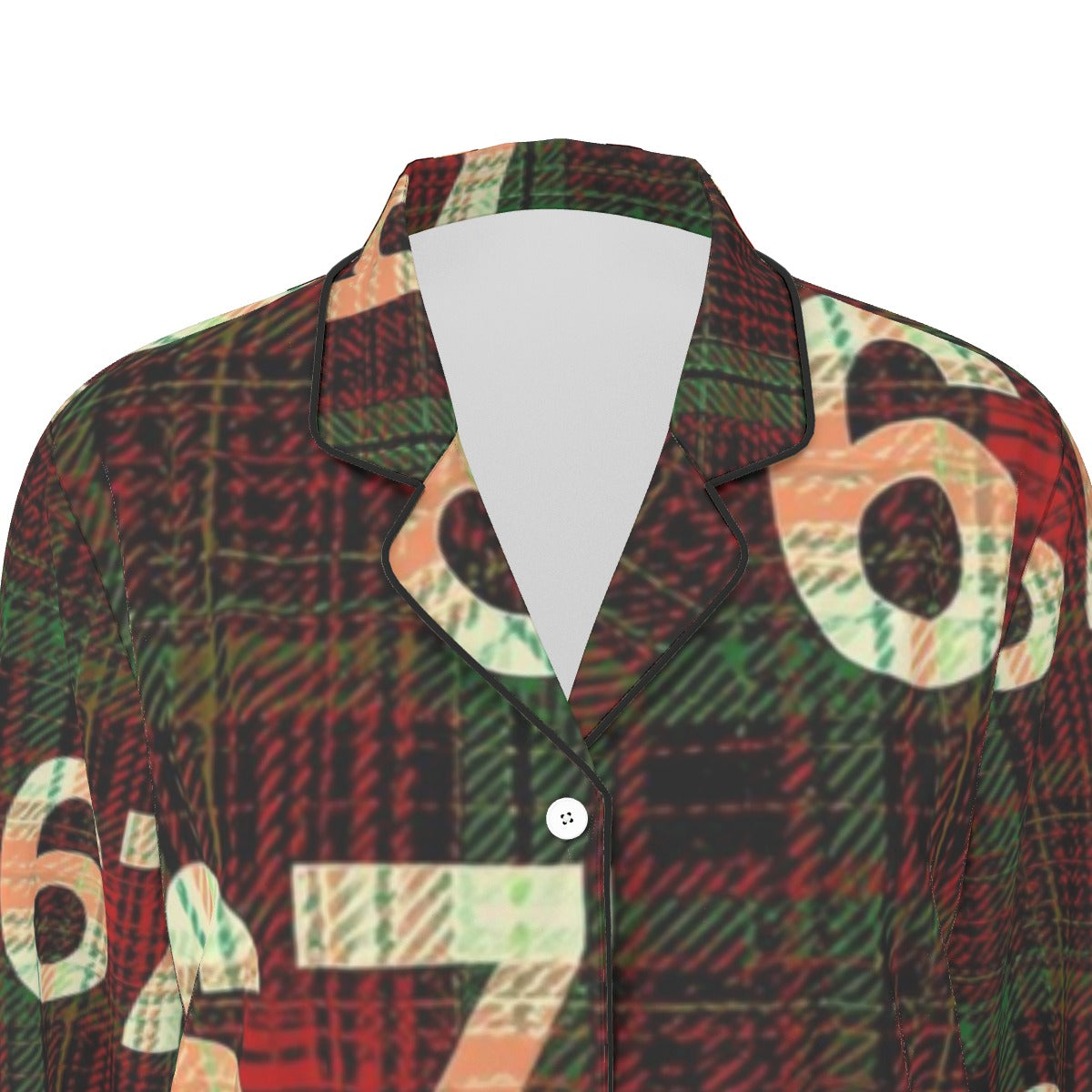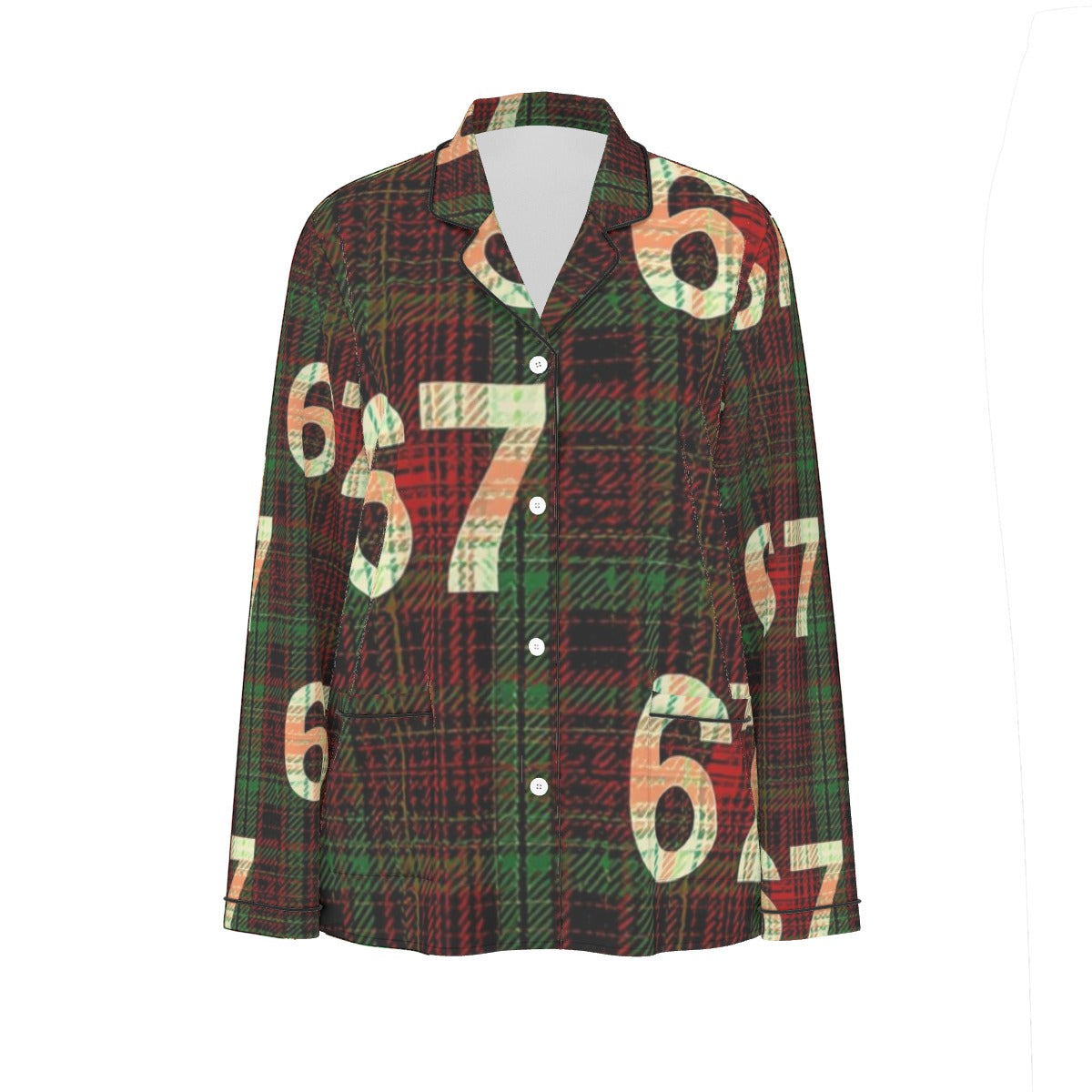 67 Women's Long Sleeve Pajama Set with Black Piping