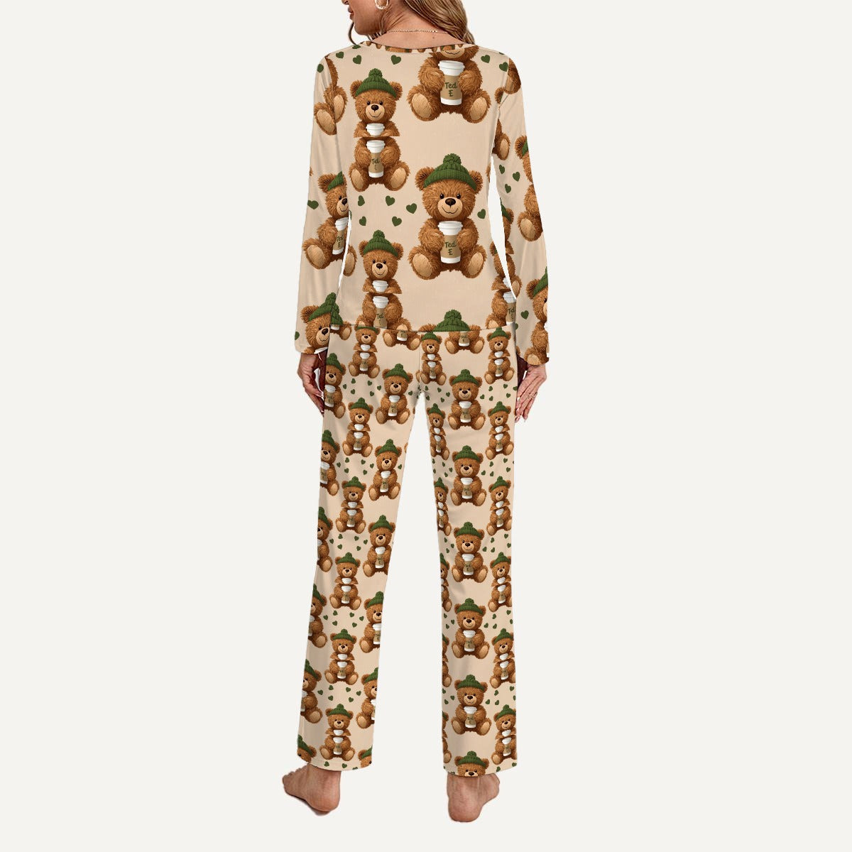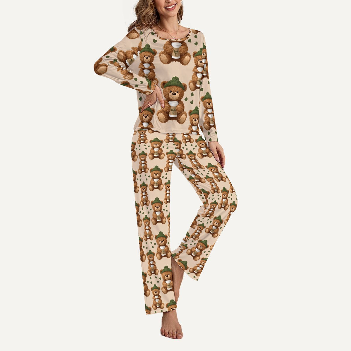 This women's loungewear set is crafted from soft, double-faced brushed milk silk for ultimate comfort. The fabric is silky smooth, breathable, and warm, allowing you to relax all day long. The loose-fitting long-sleeved top paired with wide-leg pants creates a perfect balance of elegance and effortless comfort. Perfect for cozy pajamas or stylish loungewear, it's the perfect choice for relaxing, lounging, or just lounging around the house.