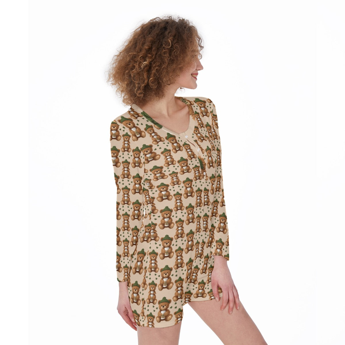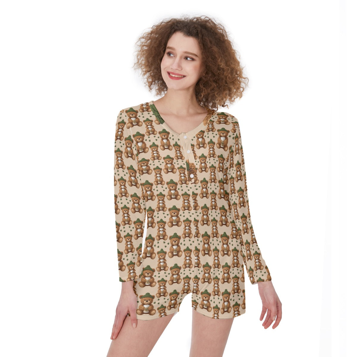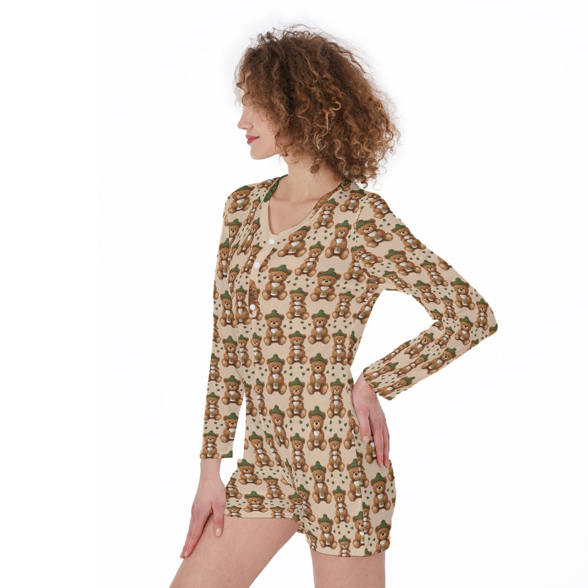 - 3 buttons,jumpsuit,long sleeve and short pants