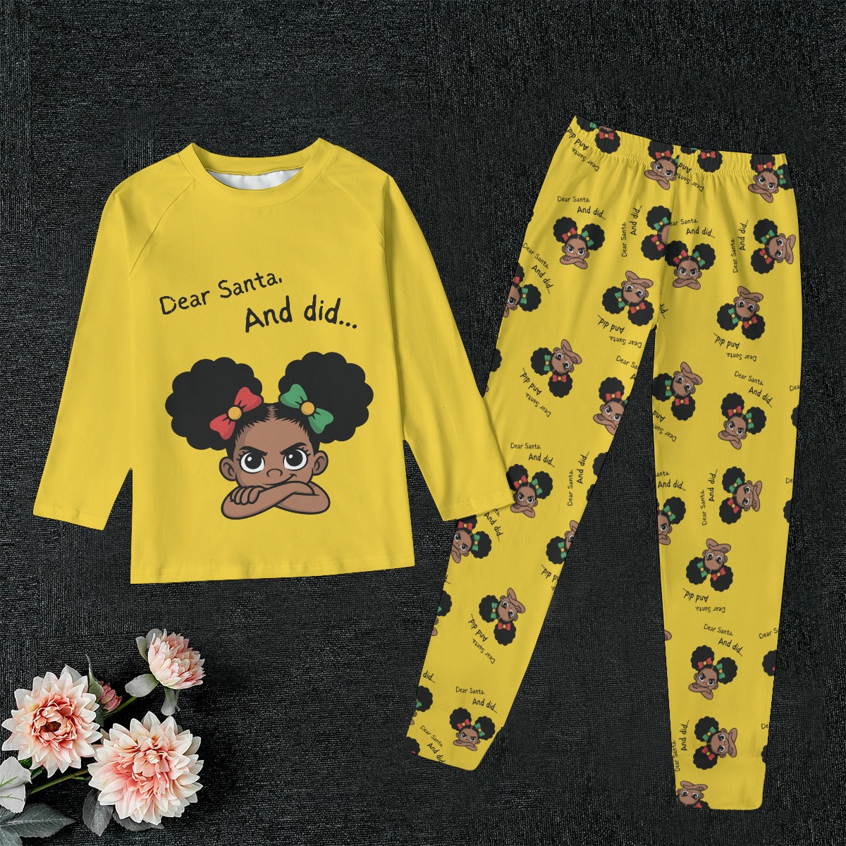 Santa and Did Solid Yellow Kid's Pajamas